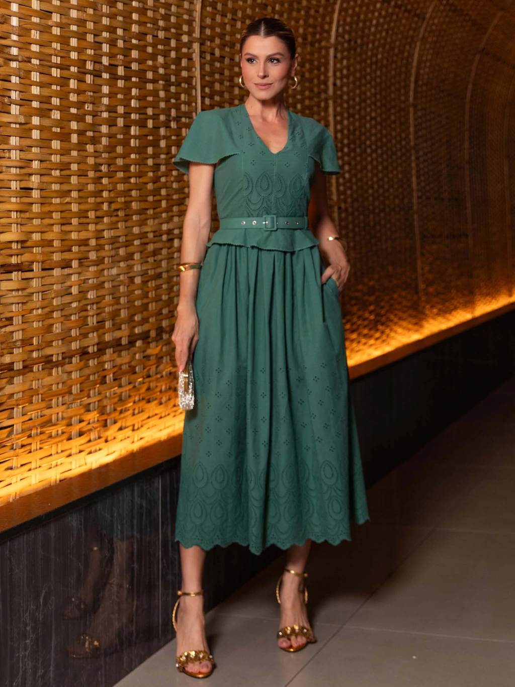 VESTIDO VOIL BORDADO COM CINTO - LUZIA FAZZOLLI